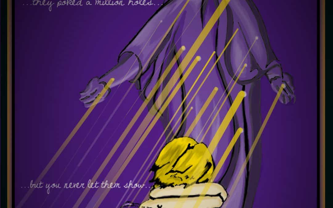 I see this song as a call to the spirit within—it is coaxing the energy to do what it has to despite its reluctance. There is sorrow, and there is loss within the words and music, and yet it all culminates into a type of resilience. The image was one that I created some time ago, and it still it feels poignant. It depicts the guarding angel which watches over us having succumbed to enough damage; forcing the child in the foreground to contemplate their loss and necessity for transition.